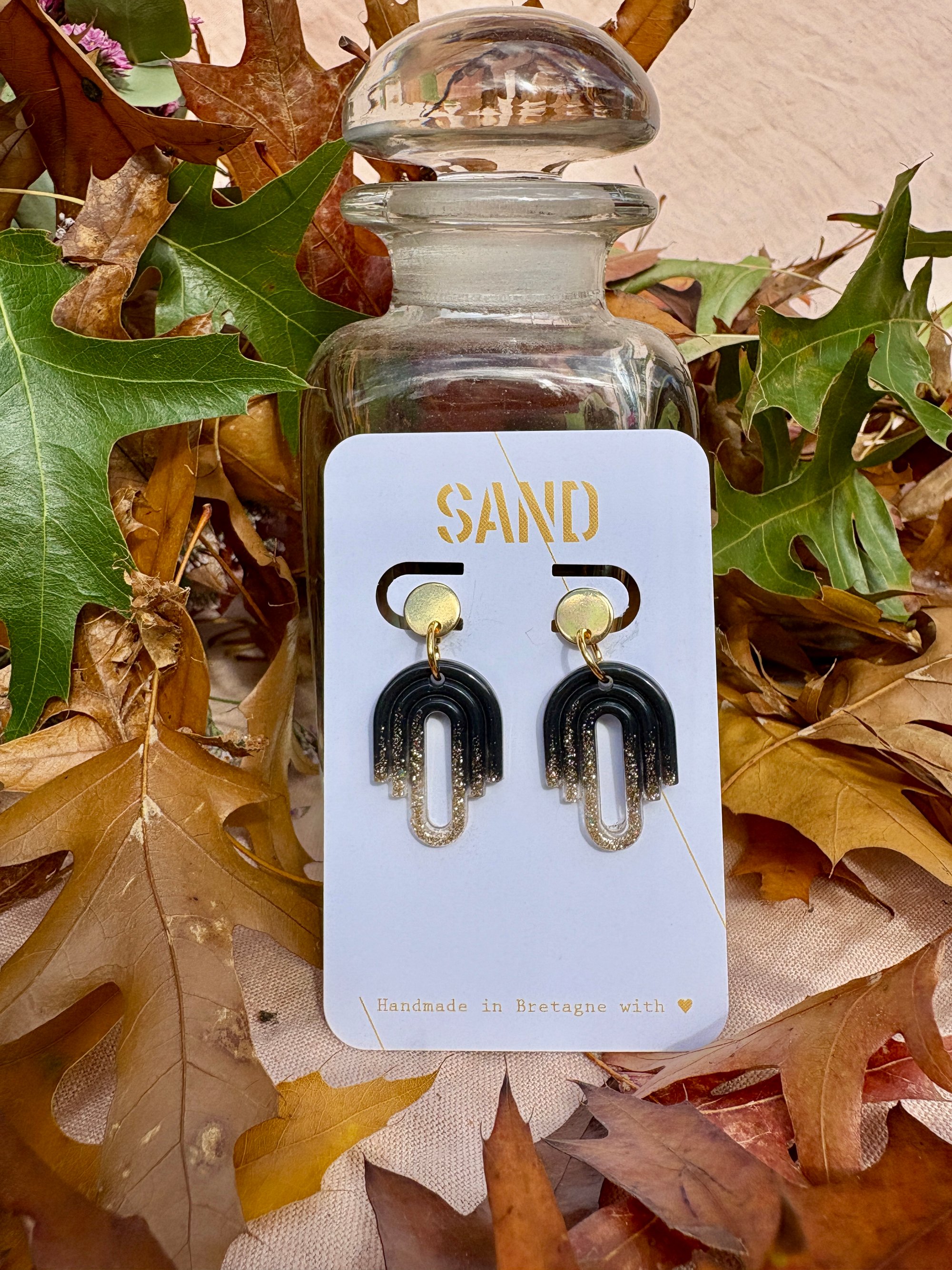 âš Paire de boucles dâoreilles rĂ©alisĂ©e en rĂ©sine bio.