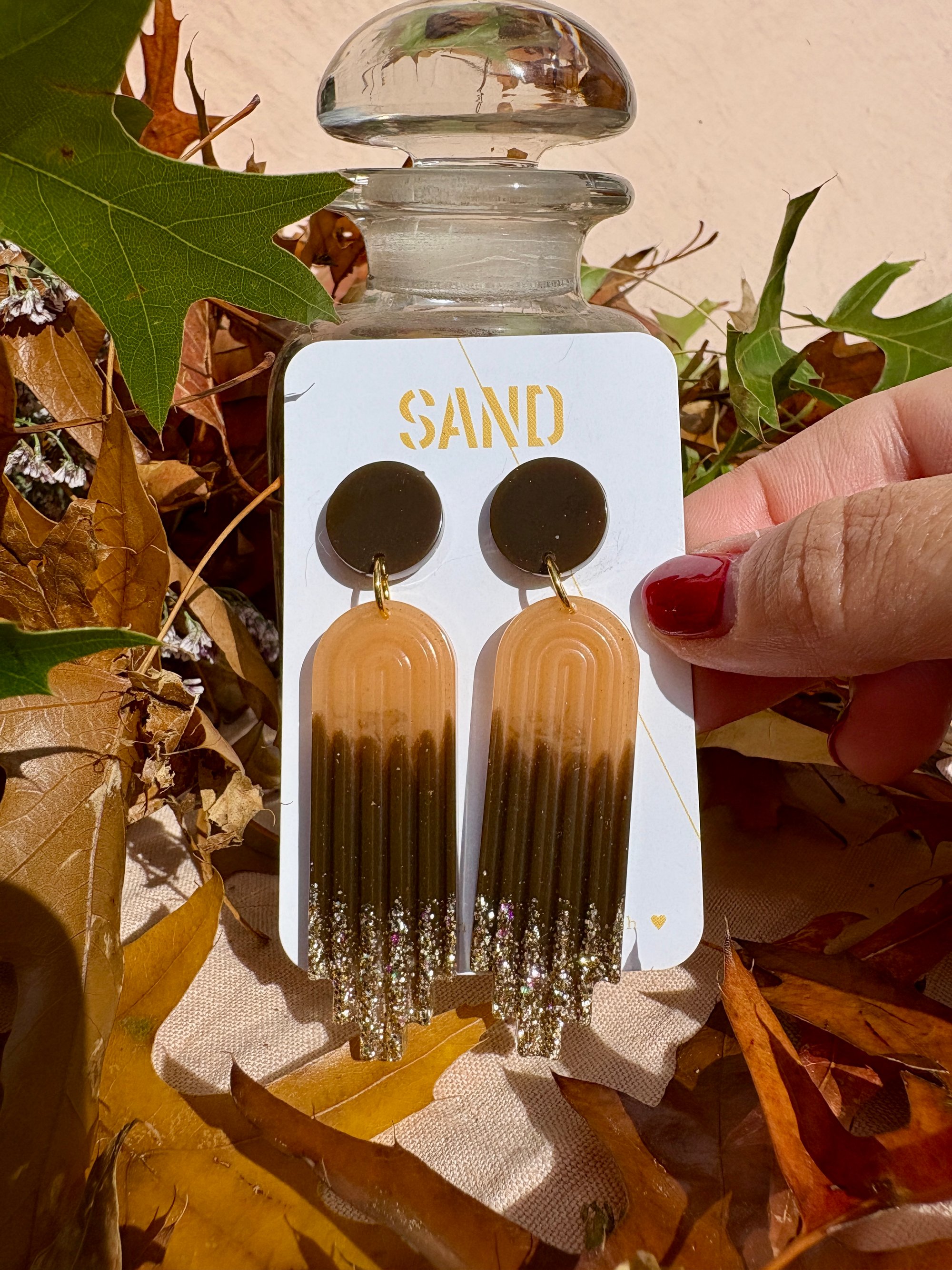 Paire de boucles d’oreilles réalisée en résine bio.