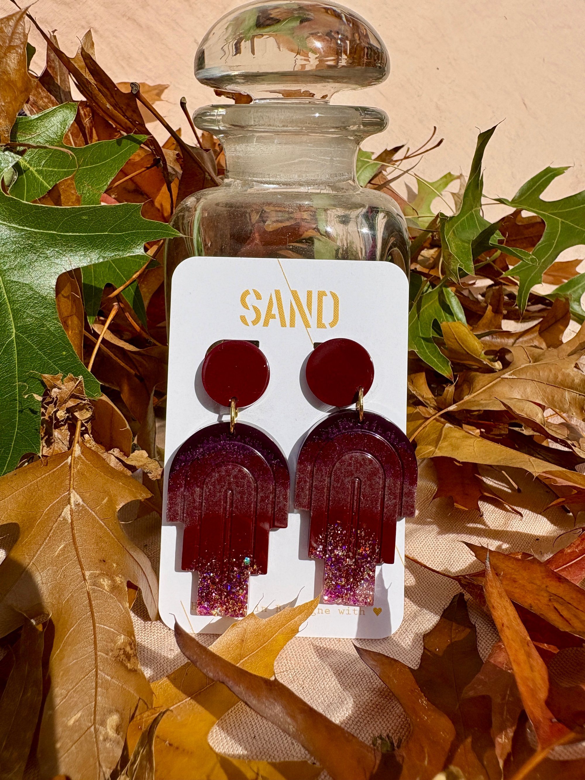 Paire de boucles d’oreilles réalisée en résine bio. Les attaches et tiges sont en acier chirurgical.
