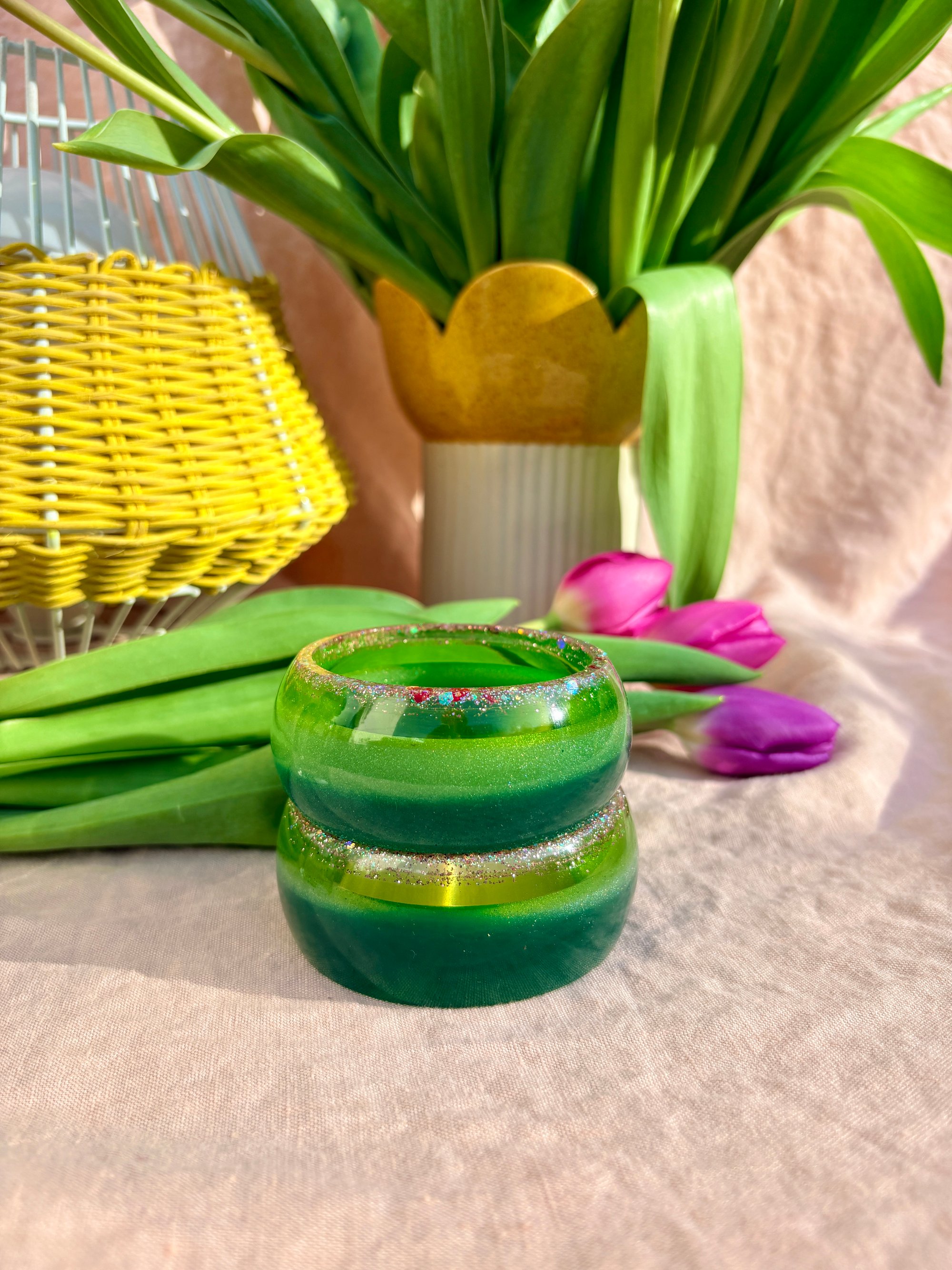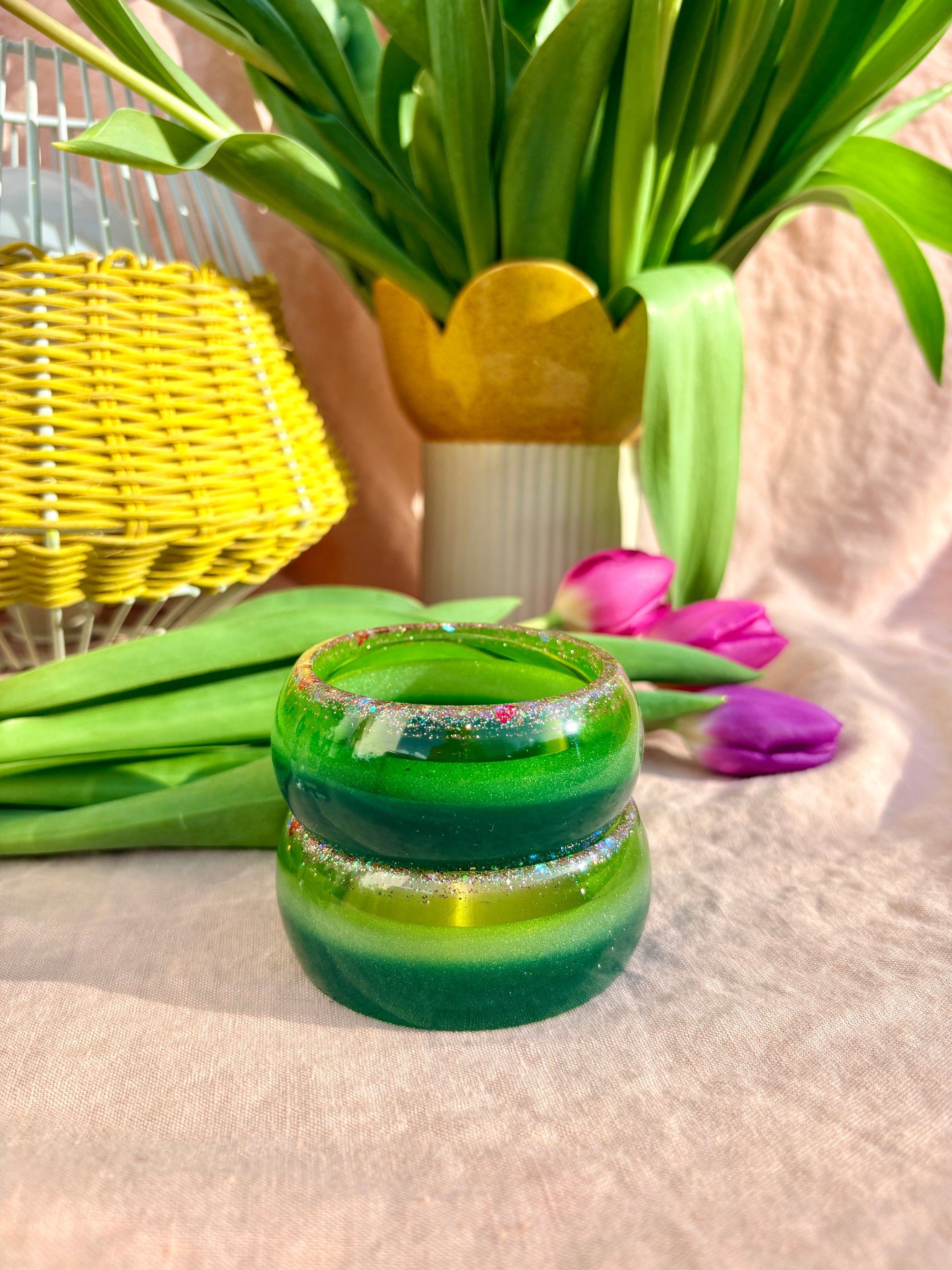 Bracelet unique large en résine bio.