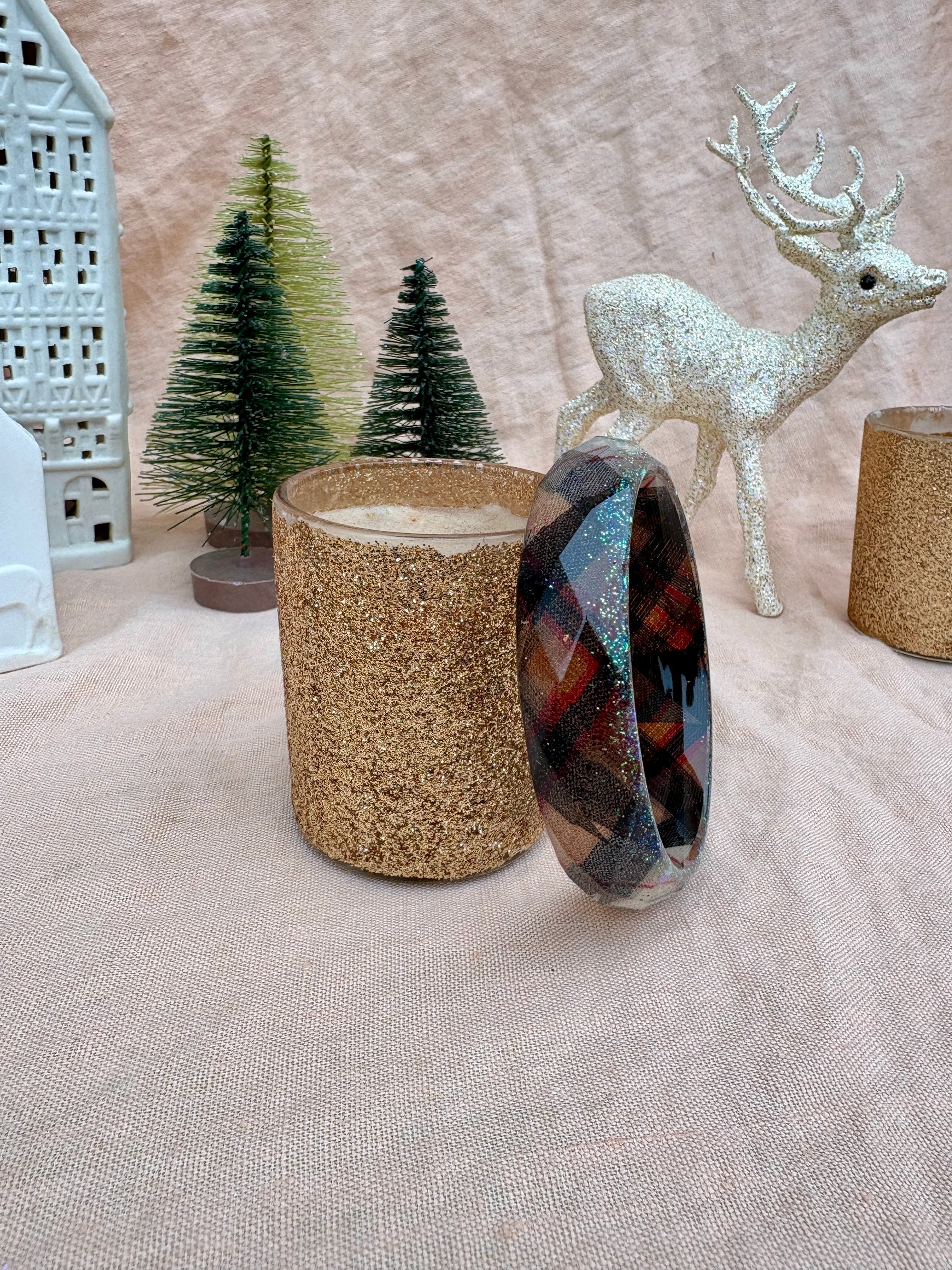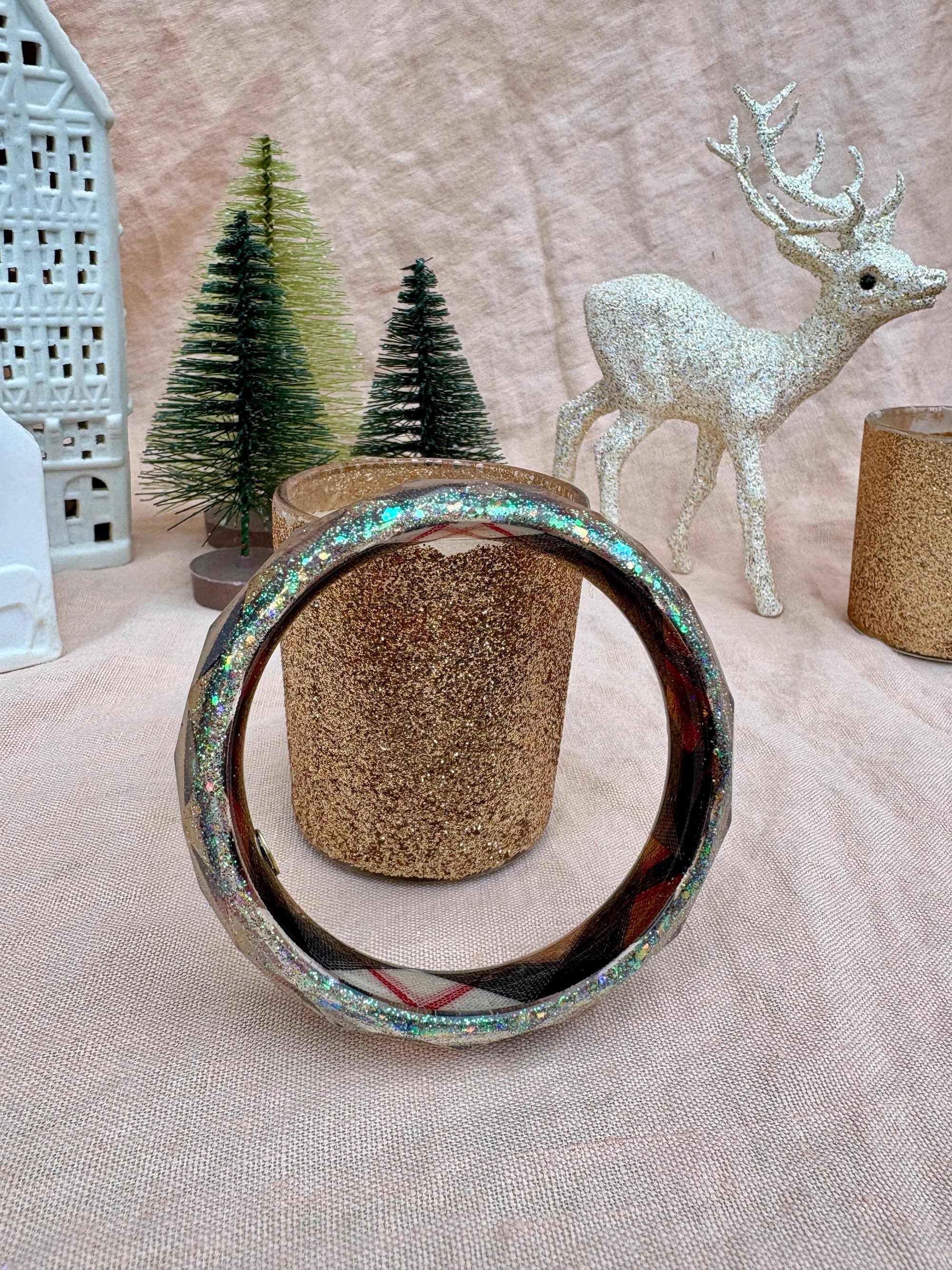 💠 Bracelet large facetté en résine bio – Diamètre intérieur : 64 mm, Épaisseur : 17 mm