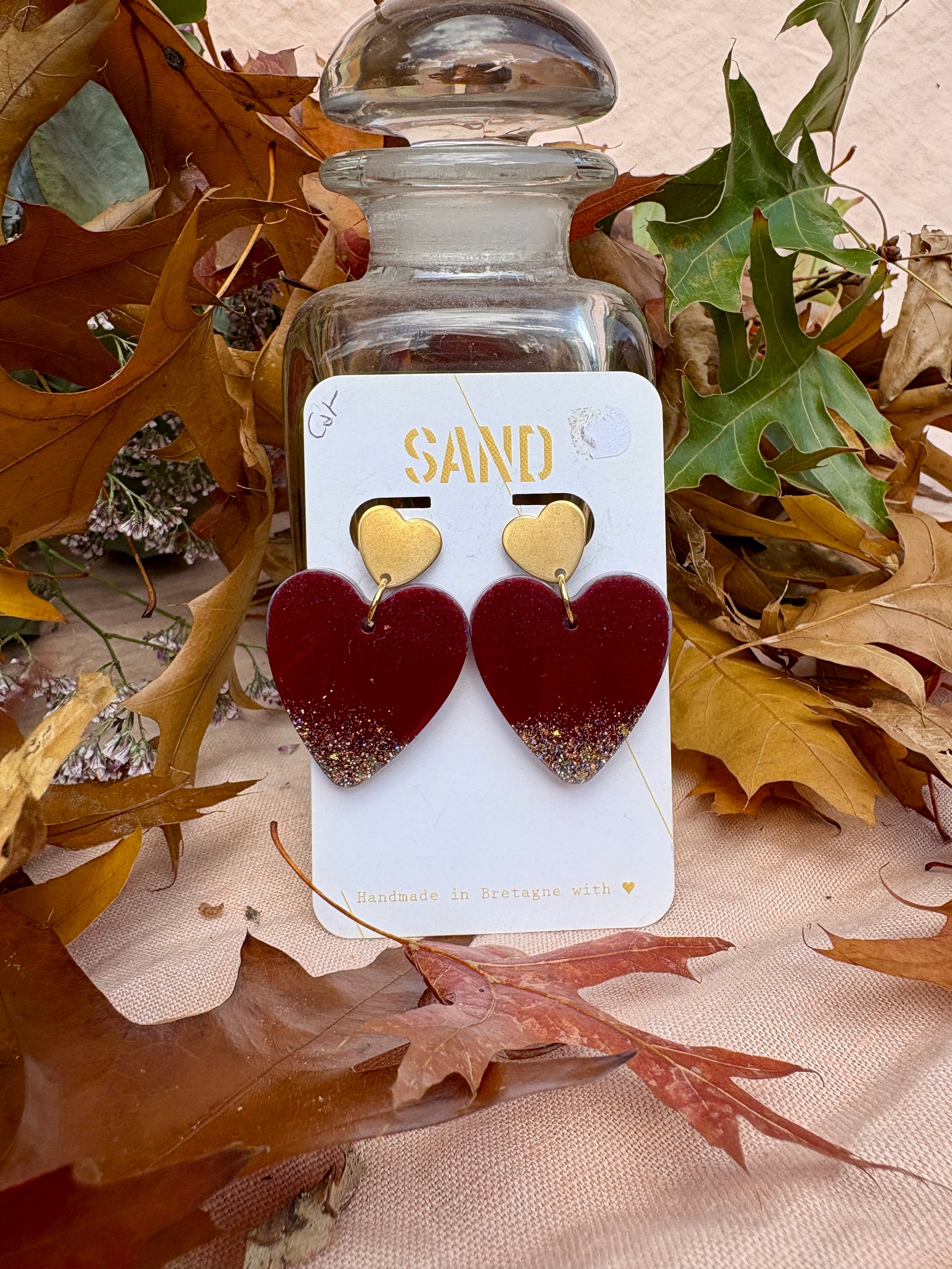 Paire de boucles d’oreilles réalisée en résine bio avec une attache cœur en acier chirurgical.