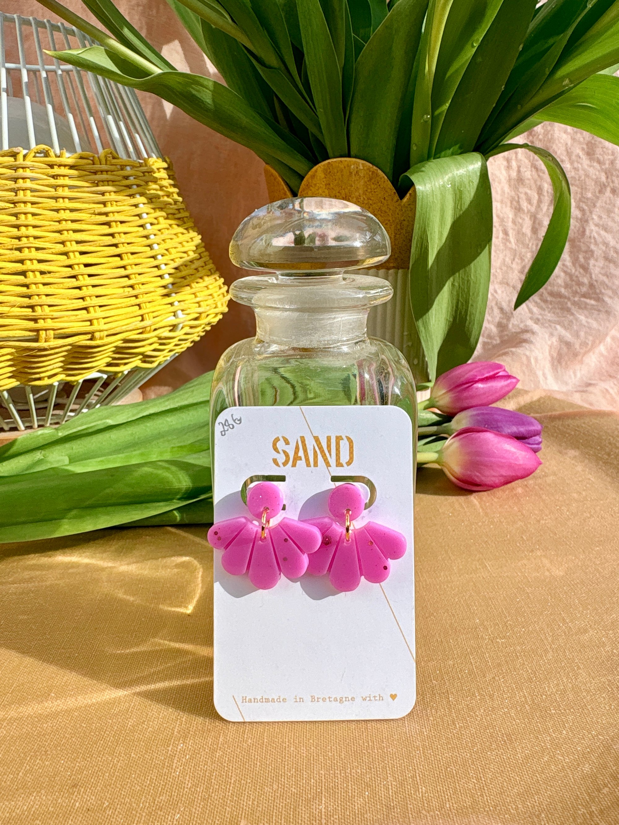 Paire de boucles d’oreilles réalisée en résine bio.