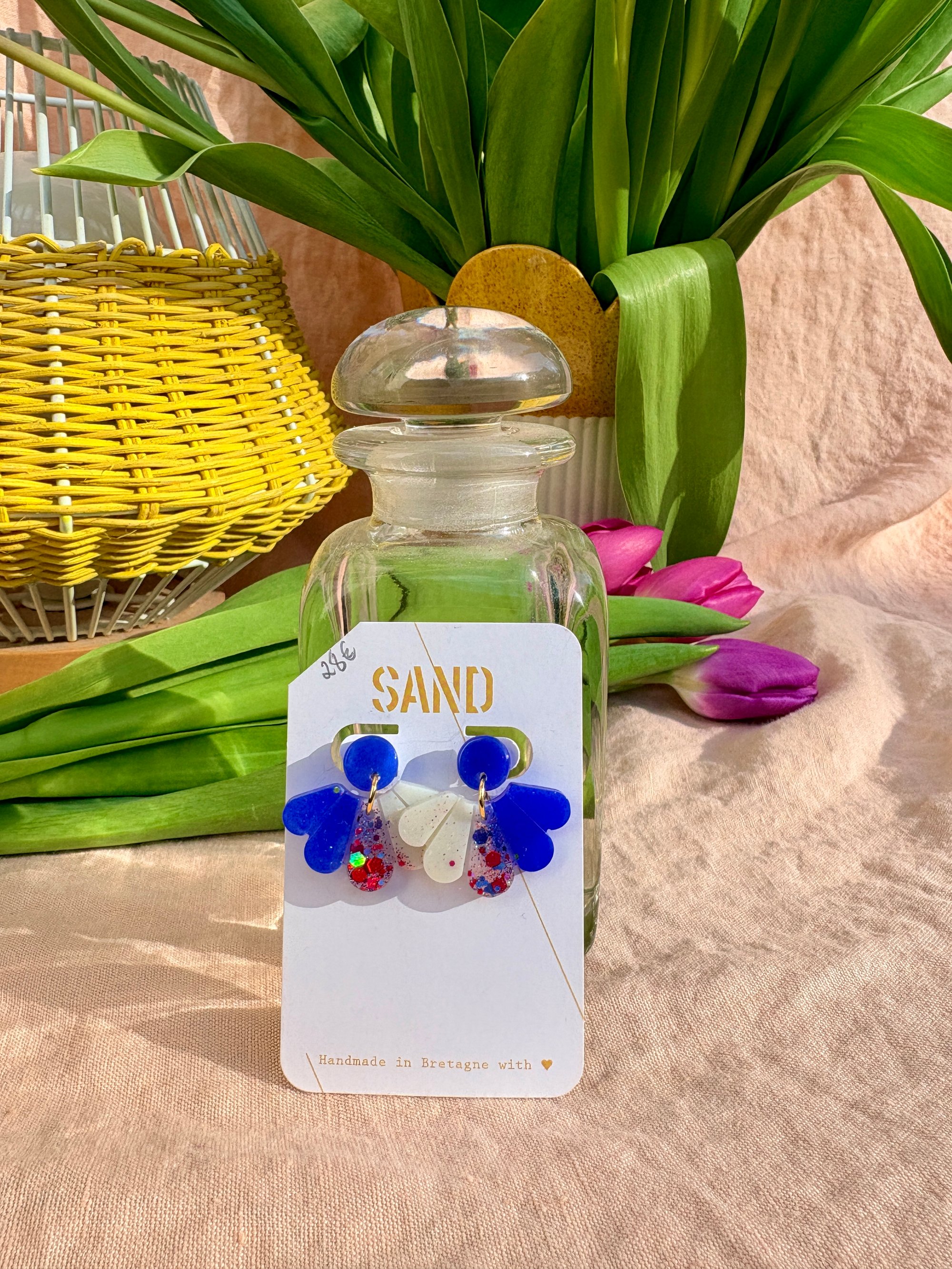 Paire de boucles d’oreilles réalisée en résine bio.