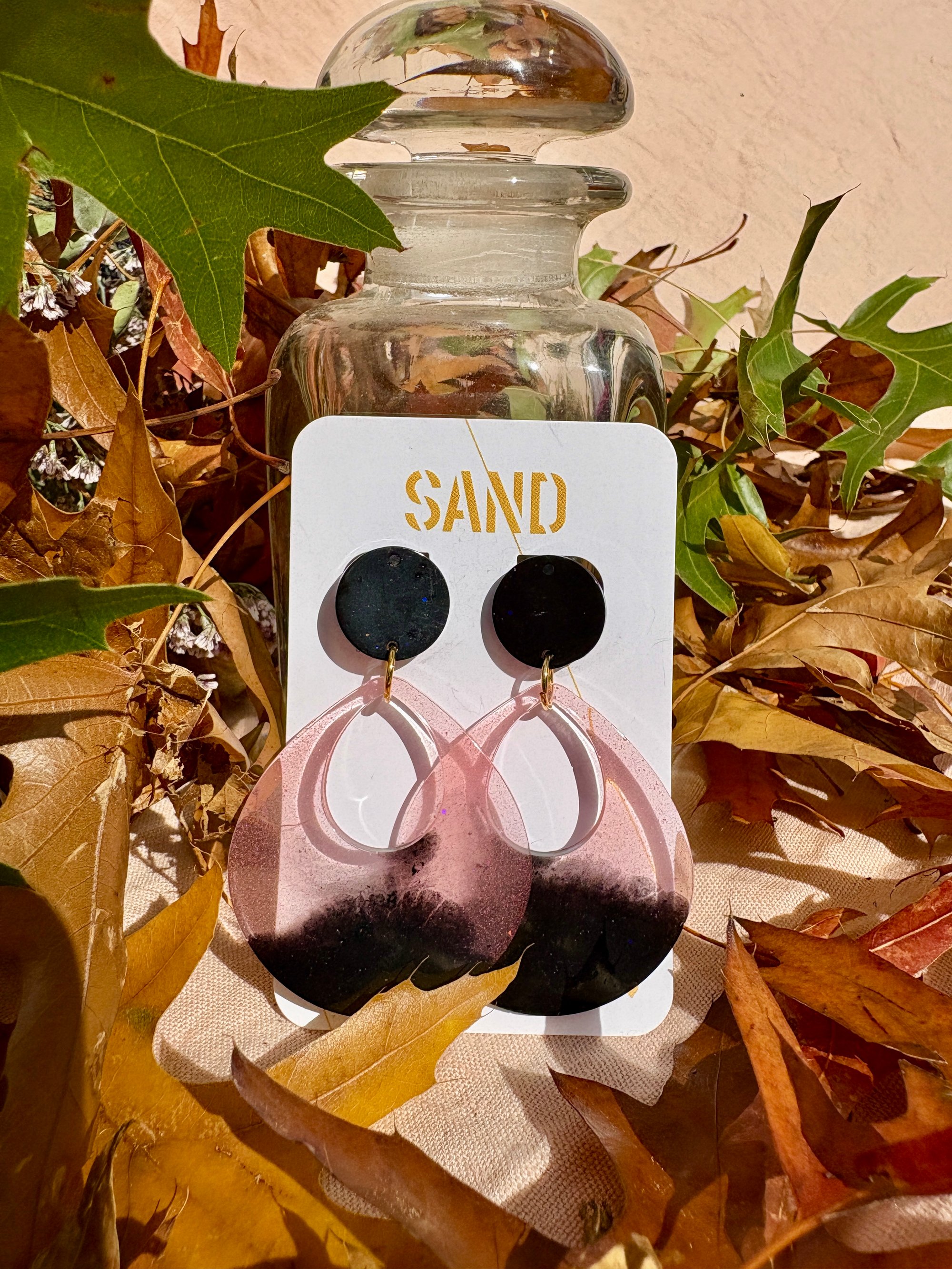 Paire de boucles d’oreilles réalisée en résine bio. Les attaches et tiges sont en acier chirurgical.
