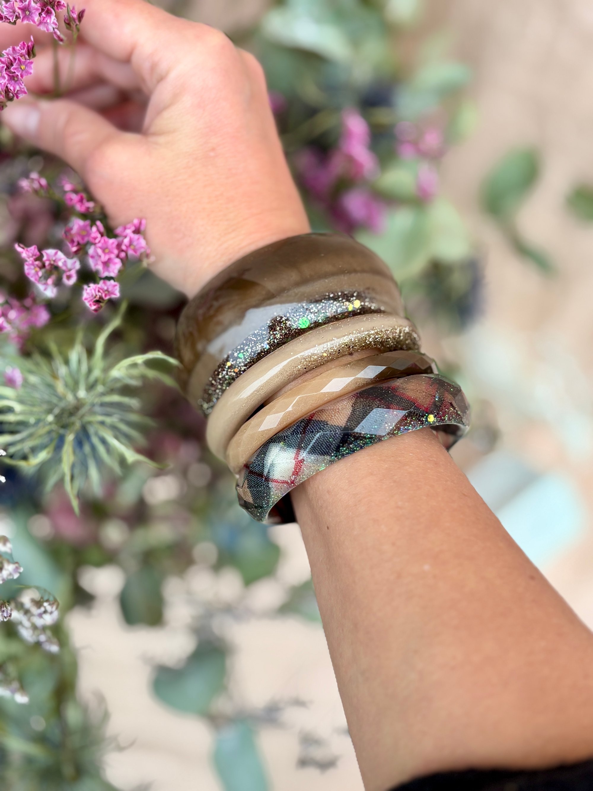 💠 Bracelet facetté en résine bio – Diamètre intérieur : 62/64 mm et/ou 66 mm